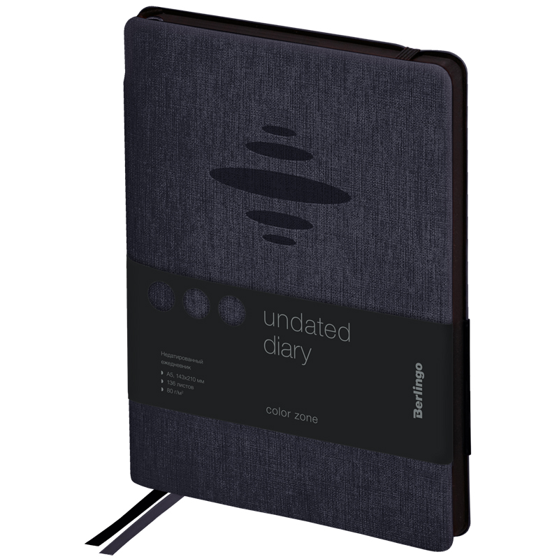 Стильный недатированный ежедневник Berlingo Color Zone формата А5 с ультрамягкой обложкой из экокожи. Черный цвет обложки элегантно сочетается со стильным тиснением. Для удобства внутри корешка расположен специальный карман для ручки, ежедневник можно зафиксировать вертикальной резинкой. Внутренний блок состоит из 136 листов высококачественной кремовой бумаги повышенной плотности 80 г/м² с пантонной печатью в 2 краски. Недатированный ежедневник Berlingo Color Zone представлен в размере 143 на 210 мм.