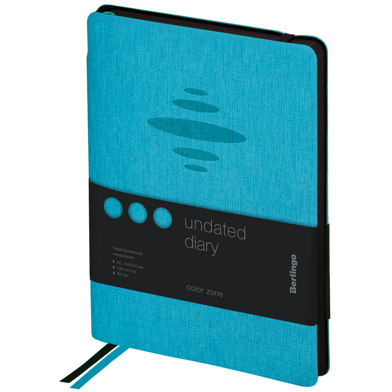 Стильный недатированный ежедневник Berlingo Color Zone формата А5 с ультрамягкой обложкой из экокожи. Голубой цвет обложки ярко контрастирует с черным срезом и сочетается со стильным тиснением. Для удобства внутри корешка расположен специальный карман для ручки, ежедневник можно зафиксировать вертикальной резинкой. Внутренний блок состоит из 136 листов высококачественной кремовой бумаги повышенной плотности 80 г/м² с пантонной печатью в 2 краски. Недатированный ежедневник Berlingo Color Zone представлен в размере 143 на 210 мм.