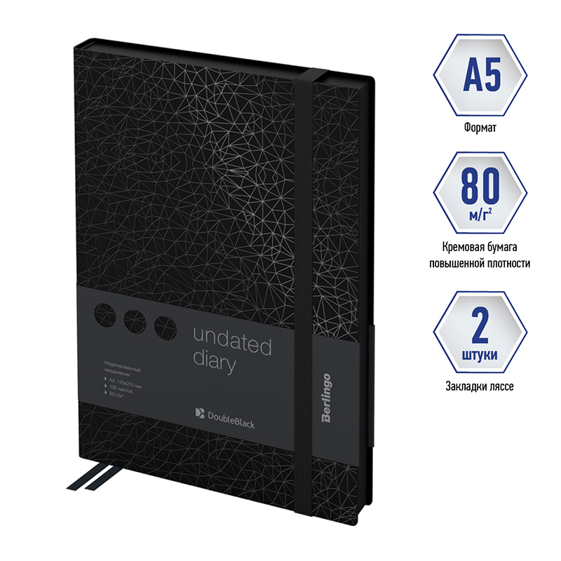 Ежедневник недатированный, А5, 136л., кожзам, Berlingo "DoubleBlack", черный срез, черный, с рисунком | Артикул: UD0_94503