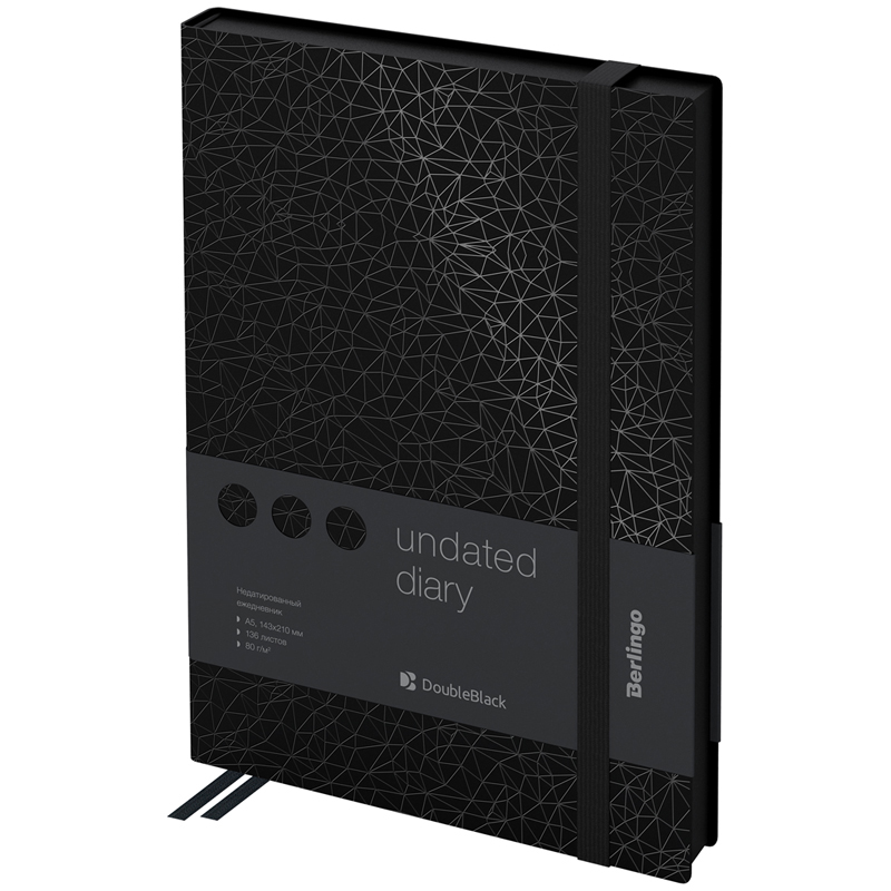 Стильные ежедневники Berlingo "DoubleBlack" с полужесткой обложкой из высококачественного soft-touch кожзаменителя с черным срезом. Вертикальная фиксирующая резинка увеличенной толщины 9мм. Цвет обложки - черный. Имиджевый рисунок лаком по всей площади обложки. Внутренний карман для хранения заметок и мелочей. Внутренний блок из 136 листов высококачественной кремовой бумаги повышенной плотности 80 г/м², пантонная печать в 2 краски, справочный материал. Перфорированные уголки блока. 2 закладки-ляссе. Отрывные заметки и бланки извещения о ДТП. Прошитый блок. Подходит под персонализацию.