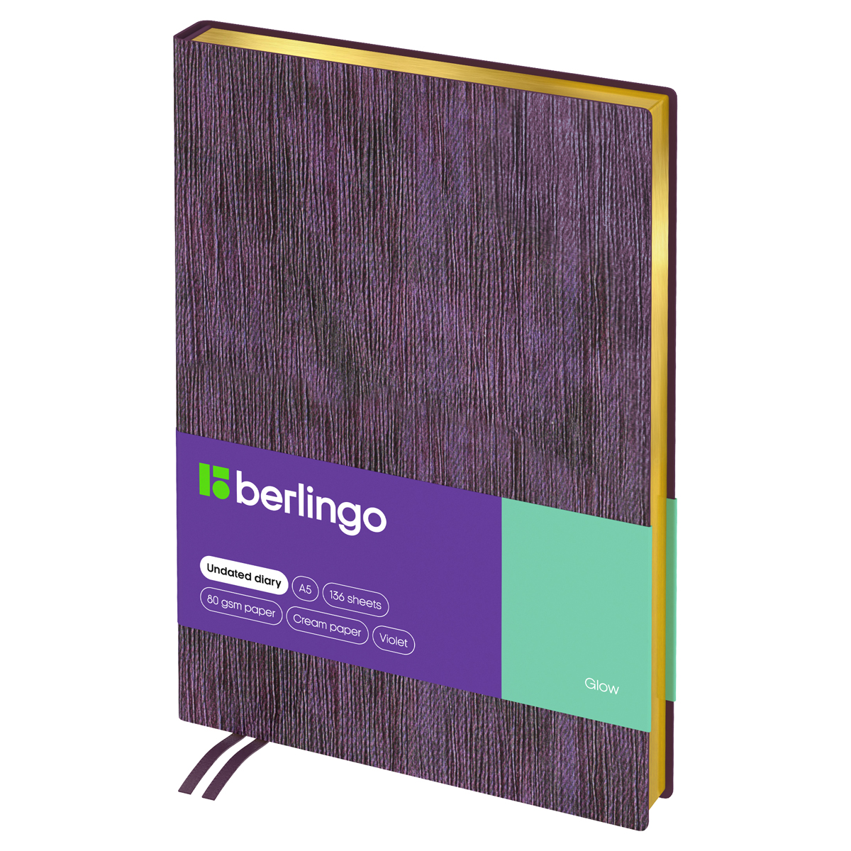 Оригинальный недатированный ежедневник Berlingo Glow формата А5 идеально подойдет в качестве подарка. Золотой фольгированный срез красиво подчеркивает фиолетовый фактурный цвет интегральной обложки из экокожи с продольной текстурой. Внутренний блок состоит из 136 листов высококачественной кремовой бумаги повышенной плотности 80 г/м² с пантонной печатью в 2 краски. Размер недатированного ежедневника – 143*210 мм.