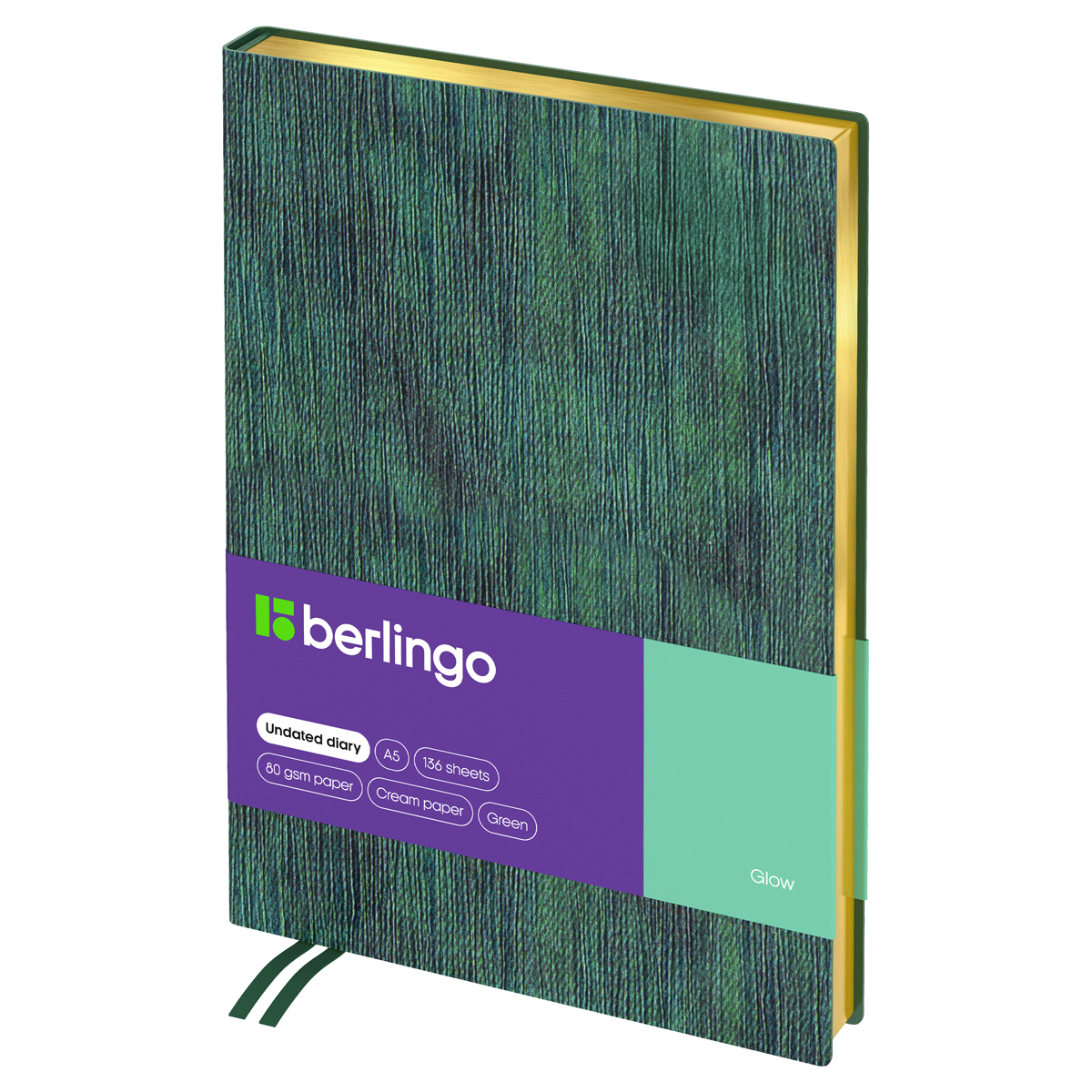 Оригинальный недатированный ежедневник Berlingo Glow формата А5 идеально подойдет в качестве подарка. Золотой фольгированный срез красиво подчеркивает зелёный фактурный цвет интегральной обложки из экокожи с продольной текстурой. Внутренний блок состоит из 136 листов высококачественной кремовой бумаги повышенной плотности 80 г/м² с пантонной печатью в 2 краски. Размер недатированного ежедневника – 143*210 мм.