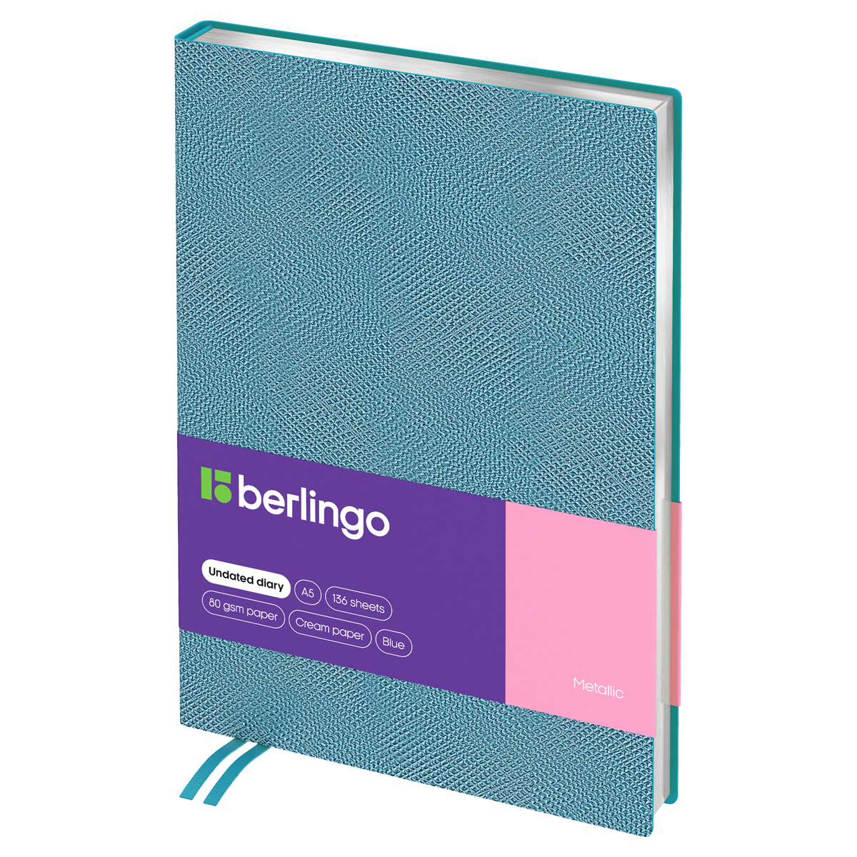 Стильный датированный ежедневник на 2024 год Berlingo Metallic формата А5 (143*210 мм) с ультрамягкой обложкой из многослойной экокожи − отличное решение для планирования. Обложка цвета голубой металлик идеально сочетается с серебряным срезом. Внутренний блок состоит из 136 листов высококачественной кремовой бумаги повышенной плотности 80 г/м² с пантонной печатью в 2 краски.
