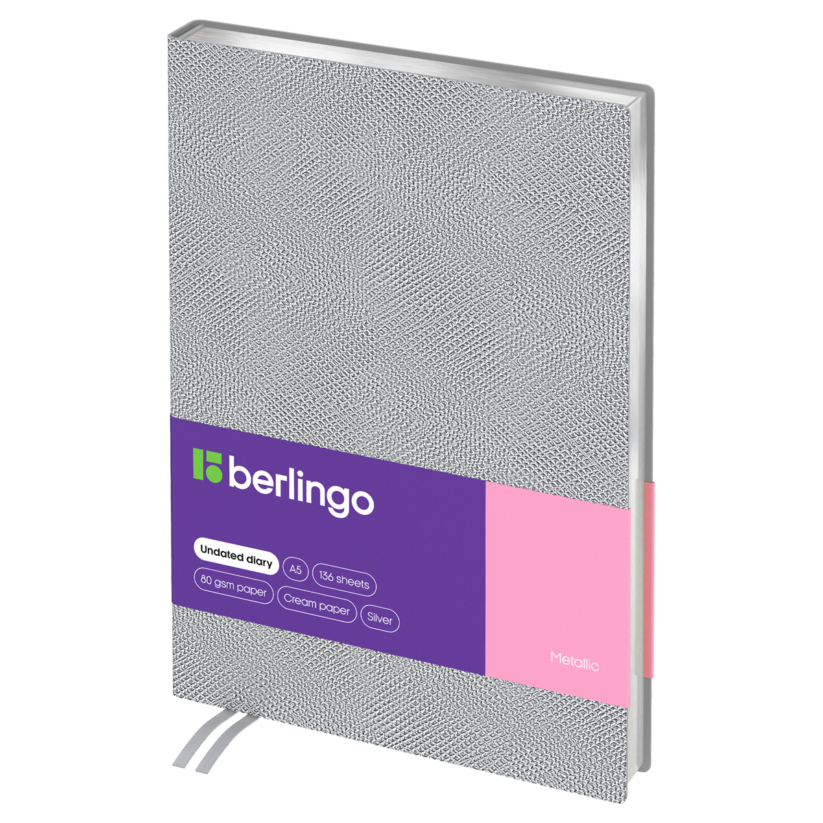 Стильный датированный ежедневник на 2024 год Berlingo Metallic формата А5 (143*210 мм) с ультрамягкой обложкой из многослойной экокожи − отличное решение для планирования. Обложка цвета серебряный металлик идеально сочетается с серебряным срезом. Внутренний блок состоит из 136 листов высококачественной кремовой бумаги повышенной плотности 80 г/м² с пантонной печатью в 2 краски.