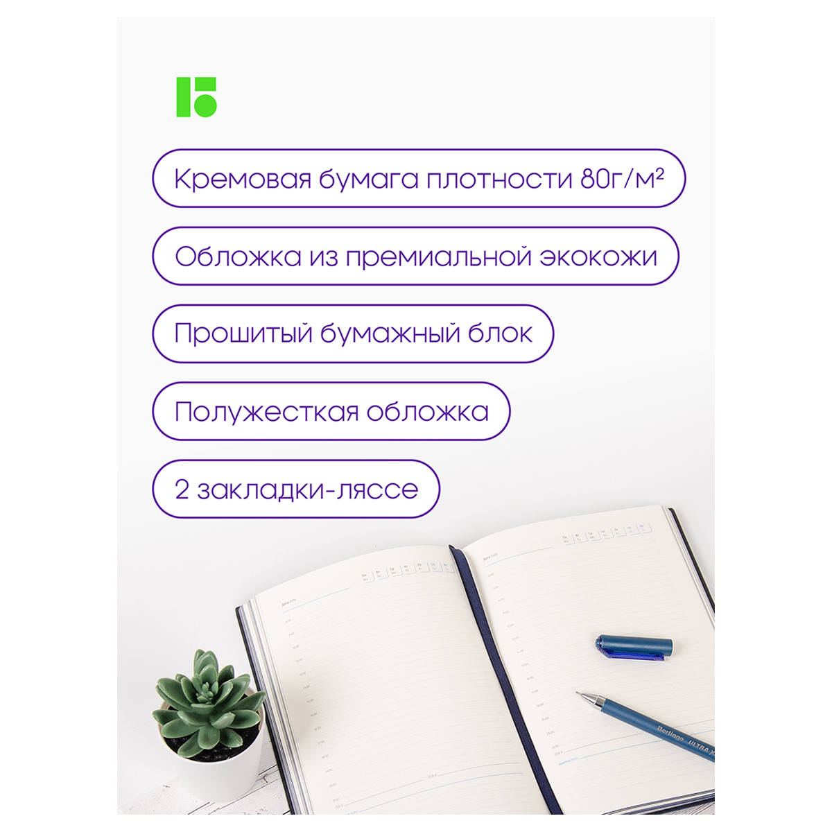 • Материал обложки: экокожа,