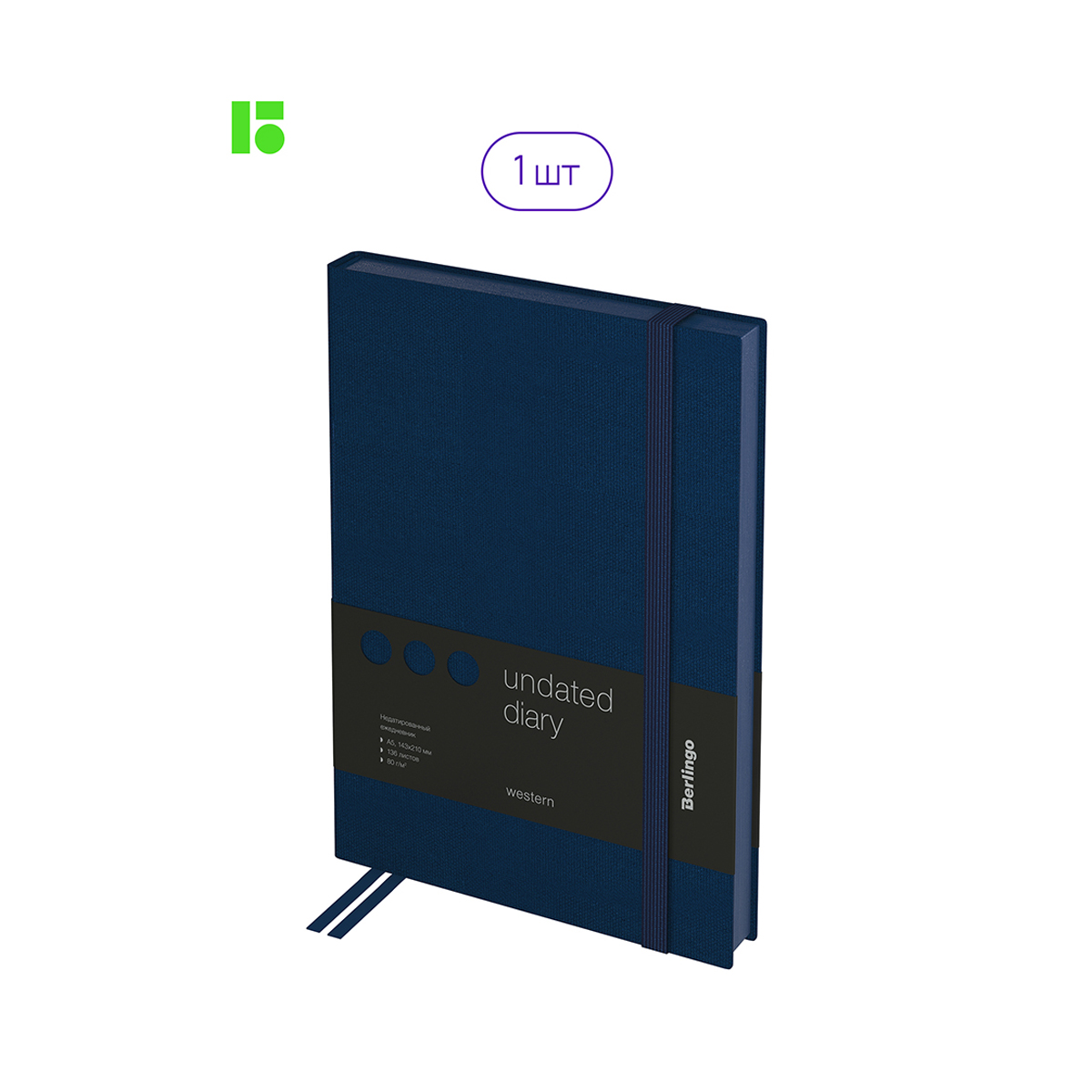 Изящный недатированный ежедневник Berlingo Western формата А5 с полужесткой обложкой из экокожи со стильным тиснением под карбон идеален для повседневного использования. Срез в цвет синей обложки приятно сочетается с общим оформлением ежедневника. Внутренний блок состоит из 136 листов высококачественной кремовой бумаги повышенной плотности 80 г/м² с пантонной печатью в 2 краски. Размер недатированного ежедневника – 143 на 210 мм.