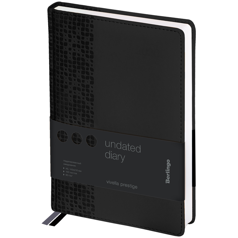 Стильный недатированный ежедневник Berlingo Vivella Prestige формата А5 с классической твердой матовой обложкой из высококачественной экокожи. Имиджевое тиснение на обложке добавляет интересную деталь в глубокий черный цвет. Внутренний блок состоит из 160 листов высококачественной белой бумаги повышенной плотности 80 г/м² с пантонной печатью в 2 краски. Недатированный ежедневник Berlingo Vivella Prestige представлен в размере 150 на 215 мм.