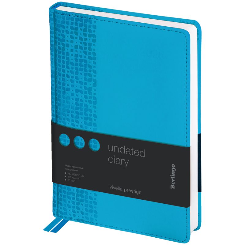 Стильный недатированный ежедневник Berlingo Vivella Prestige формата А5 с классической твердой матовой обложкой из высококачественной экокожи. Имиджевое тиснение на обложке добавляет интересную деталь в нежный голубой цвет. Внутренний блок состоит из 160 листов высококачественной белой бумаги повышенной плотности 80 г/м² с пантонной печатью в 2 краски. Недатированный ежедневник Berlingo Vivella Prestige представлен в размере 150 на 215 мм.