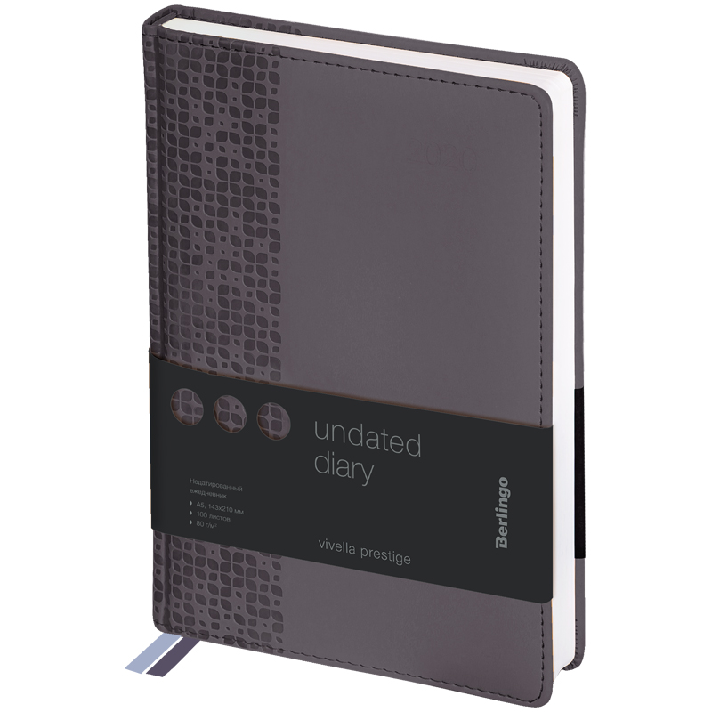 Стильный недатированный ежедневник Berlingo Vivella Prestige формата А5 с классической твердой матовой обложкой из высококачественной экокожи. Имиджевое тиснение на обложке добавляет яркую деталь в лаконичный серый цвет. Внутренний блок состоит из 160 листов высококачественной белой бумаги повышенной плотности 80 г/м² с пантонной печатью в 2 краски. Недатированный ежедневник Berlingo Vivella Prestige представлен в размере 150 на 215 мм.
