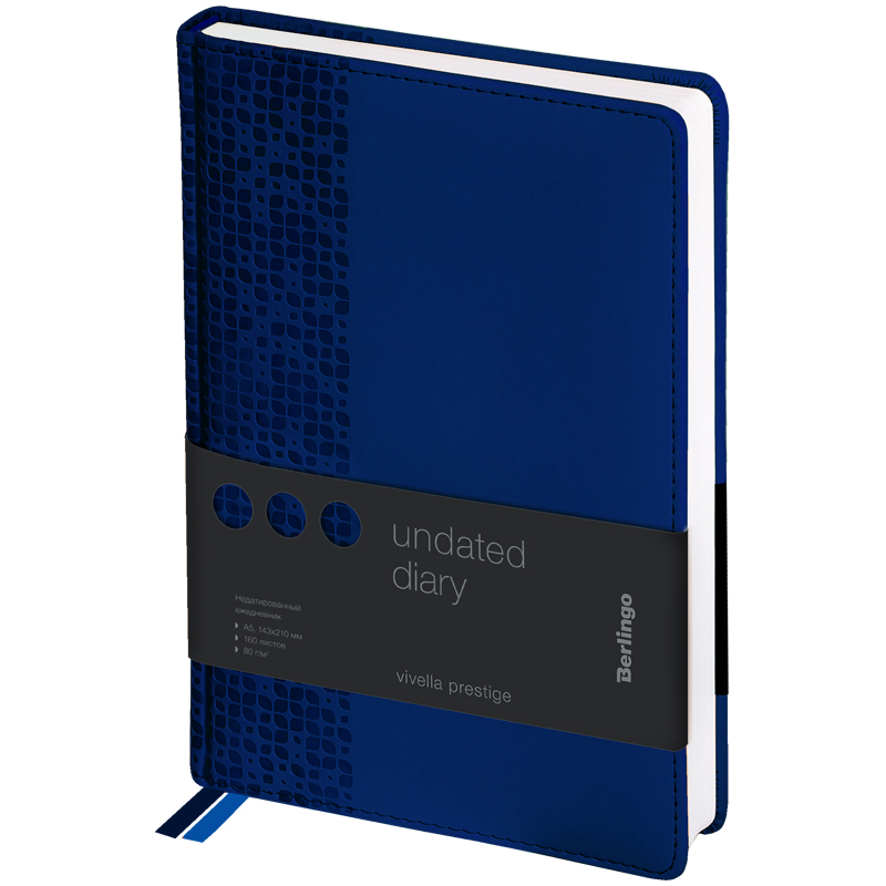 Стильный недатированный ежедневник Berlingo Vivella Prestige формата А5 с классической твердой матовой обложкой из высококачественной экокожи. Имиджевое тиснение на обложке добавляет яркую деталь в классический синий цвет. Внутренний блок состоит из 160 листов высококачественной белой бумаги повышенной плотности 80 г/м² с пантонной печатью в 2 краски. Недатированный ежедневник Berlingo Vivella Prestige представлен в размере 150 на 215 мм.