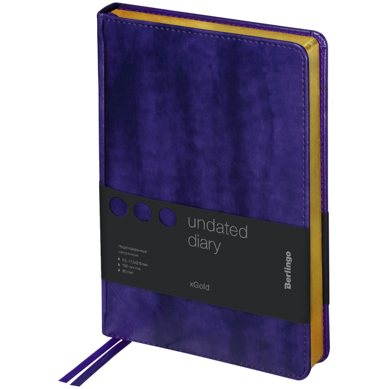 Оригинальный недатированный ежедневник Berlingo xGold формата А5 с твердой обложкой из экокожи и поролоновой прослойкой понравится каждому. Золотой фольгированный срез красиво подчеркивает глубокий фиолетовый цвет обложки. Внутренний блок состоит из 160 листов высококачественной кремовой бумаги повышенной плотности 80 г/м² с пантонной печатью в 2 краски. Размер недатированного ежедневника – 150 на 215 мм.