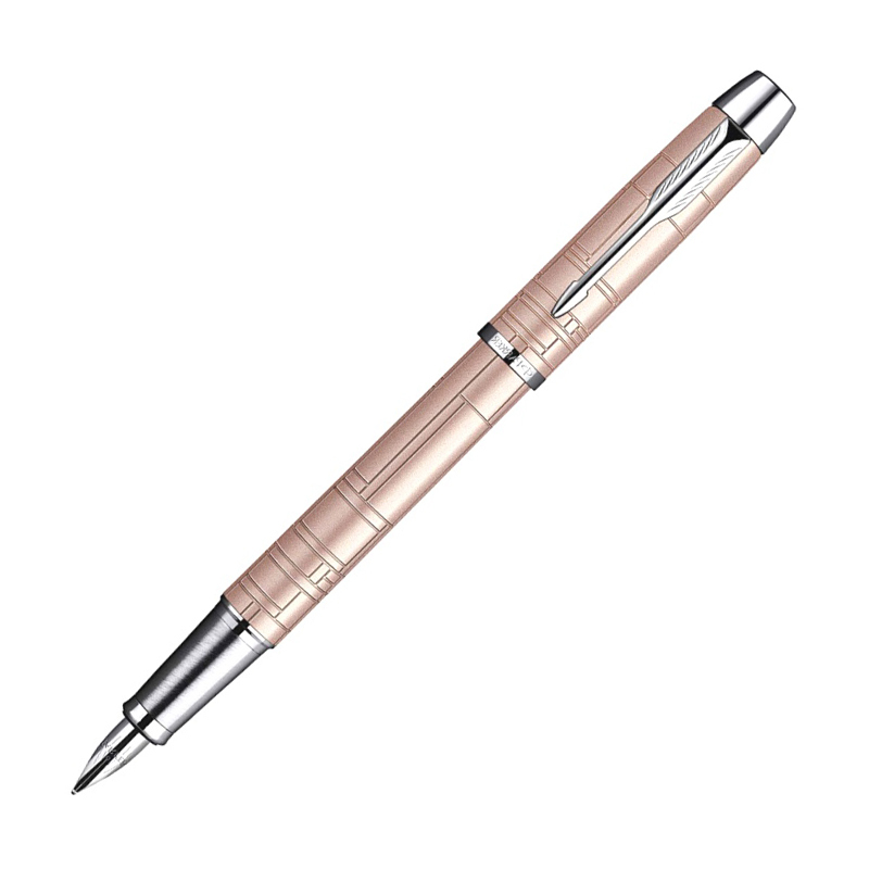 Ручка перьевая Parker IM Premium Pink CT имеет облегченный корпус весом 29 граммов и позиционируется как женская. Однако лаконичный дизайн с роскошной геометрической гравировкой и благородным сочетанием цветов привлекает стильных молодых мужчин. Ручка изготовлена из ювелирной латуни и покрыта матовым акриловым лаком пудрового оттенка с ярко выраженным металлическим отливом. Абстрактный геометрический узор в стиле неопластицизм (Mondriaan style) выполнен методом травления. Баррельная секция и декоративные детали обработаны серебристым хромом. Колпачок фиксируется на кольцевой клапан. Отполированное стальное перо оснащено гибким волокнистым наконечником тонкой заточки. Ручка с первых штрихов подстраивается под качество бумаги и почерк владельца, выдавая гладкую изящную линию толщиной fine size (тонкая).