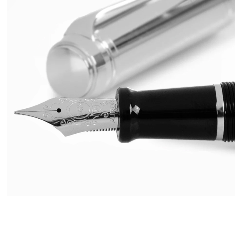 Aurora Talentum Fountain Pen Chrome/Black поставляется с хромированной отделкой и картриджем/конвертером (в комплекте). Она усовершенствована большим пером из 14-каратного золота собственного производства Aurora. Она упакована в красивую и элегантную подарочную коробку из искусственной кожи.