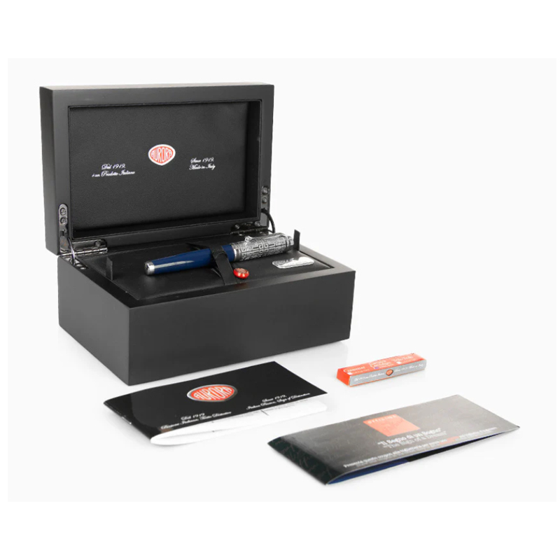 Эта синяя перьевая ручка из смолы, украшенная хромированными акцентами и пером из 14-каратного золота с родиевым покрытием, поставляется со стандартным футляром из коллекции Talentum LE. Однако на этот раз она включает в себя фирменный внешний чехол с логотипом и названием коллекции. Лимитированный тираж 555 экземпляров.