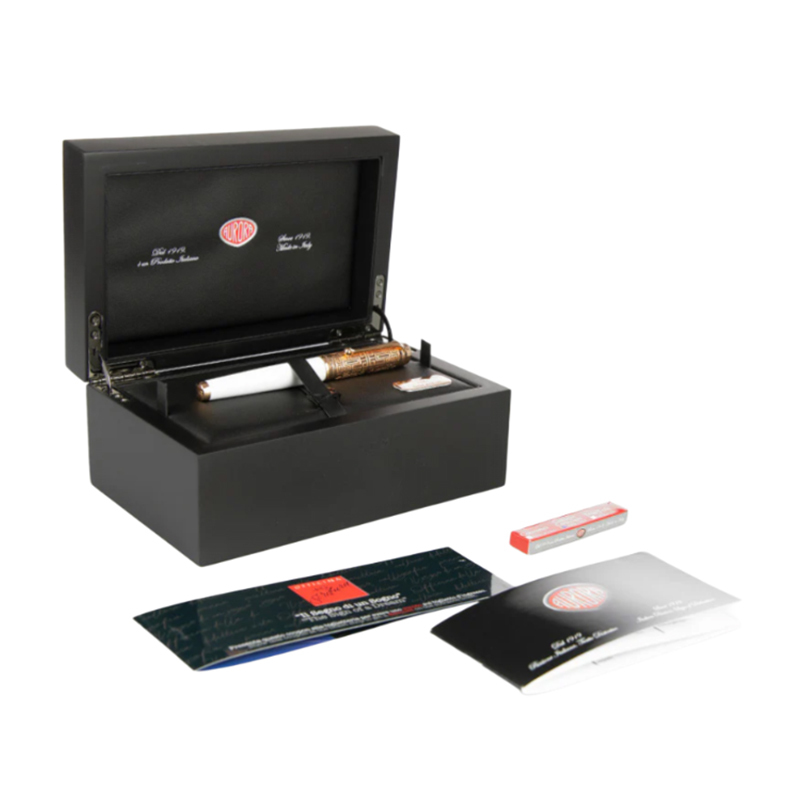 Эта белая перьевая ручка из смолы, украшенная акцентами PVD из розового золота и пером из 14-каратного золота, поставляется со стандартным футляром из коллекции Talentum LE. Однако на этот раз она включает в себя фирменный внешний чехол с логотипом и названием коллекции. Лимитированный тираж 555 экземпляров.