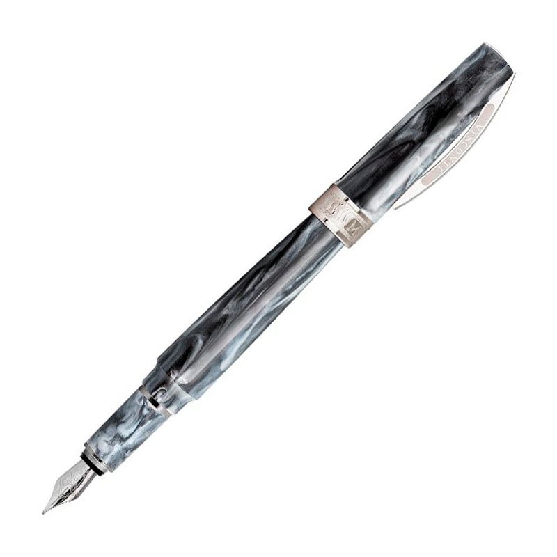 Мираж – магический оптический эффект зеркального отражения, который смешивает реальное и иллюзорное. Visconti предлагает прикоснуться к этому призрачному явлению, представляя необычную коллекцию пишущих инструментов Mirage. Перьевая ручка Mirage Horn изготовлена из смолы туманно-серого цвета, украшенной искусными лаконичными узорами, которые придают аксессуару ощущение жизни и движения. Плавные и гармоничные линии колпачка и барреля соединяются воедино в центре пишущего инструмента при его закрытии. Единственными контрастными элементами дизайна остаются культовый дугообразный клип Visconti и широкое металлическое кольцо колпачка, декорированное оригинальной гравировкой. Тонкие продольные канавки, чередующиеся на корпусе и колпачке ручки, заставляют свет и тени играть и переливаться на поверхности смолы, создавая иллюзорные образы. Металлические части ручки Mirage изготовлены из полированной латуни и покрыты блестящим палладием. Колпачок на фирменном магнитном замке надежно защищает перо от засыхания чернил. Пишущий инструмент оснащается стальными перьями с толщиной линии от Extra-Fine до Broad, которые легко меняются.