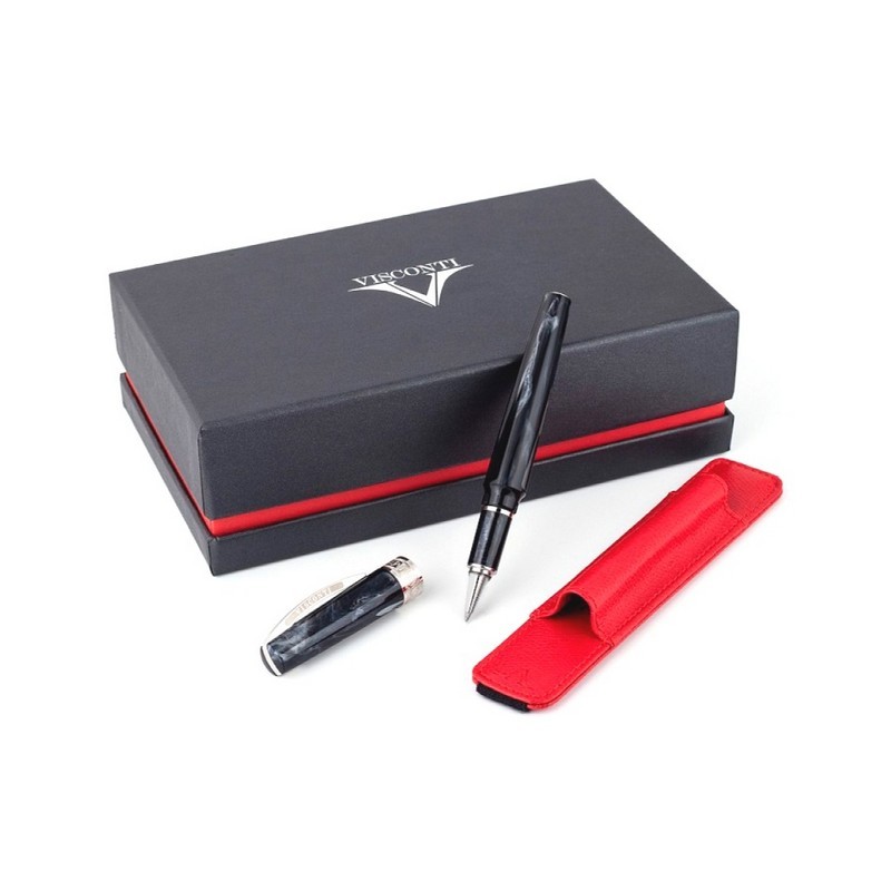 Мираж – магический оптический эффект зеркального отражения, который смешивает реальное и иллюзорное. Visconti предлагает прикоснуться к этому призрачному явлению, представляя необычную коллекцию пишущих инструментов Mirage. Ручка-роллер Mirage Black изготовлена из смолы черного цвета, украшенной искусными лаконичными узорами, которые придают аксессуару ощущение жизни и движения. Плавные и гармоничные линии колпачка и барреля соединяются воедино в центре пишущего инструмента при его закрытии. Единственными контрастными элементами дизайна остаются культовый дугообразный клип Visconti и широкое металлическое кольцо колпачка, декорированное оригинальной гравировкой. Тонкие продольные канавки, чередующиеся на корпусе и колпачке ручки, заставляют свет и тени играть и переливаться на поверхности смолы, создавая иллюзорные образы. Металлические части ручки Mirage изготовлены из полированной латуни и покрыты блестящим палладием. Колпачок на фирменном магнитном замке надежно защищает стержень от засыхания чернил и очень удобен в использовании. В подарочный комплект с ручкой также входит открытый чехол для ручки из натуральной кожи с креплением на ежедневник.