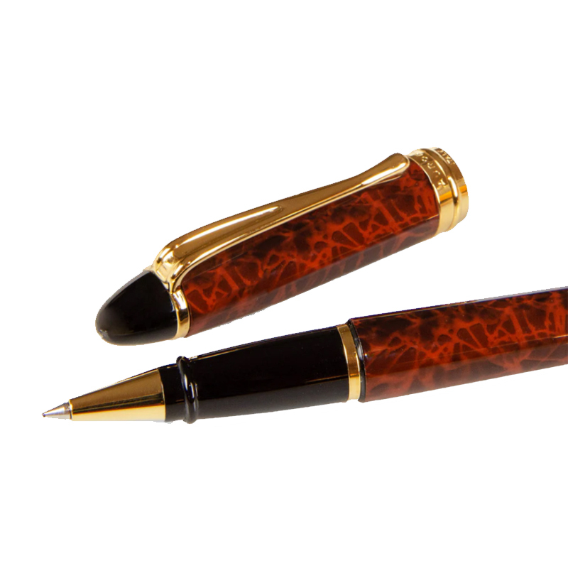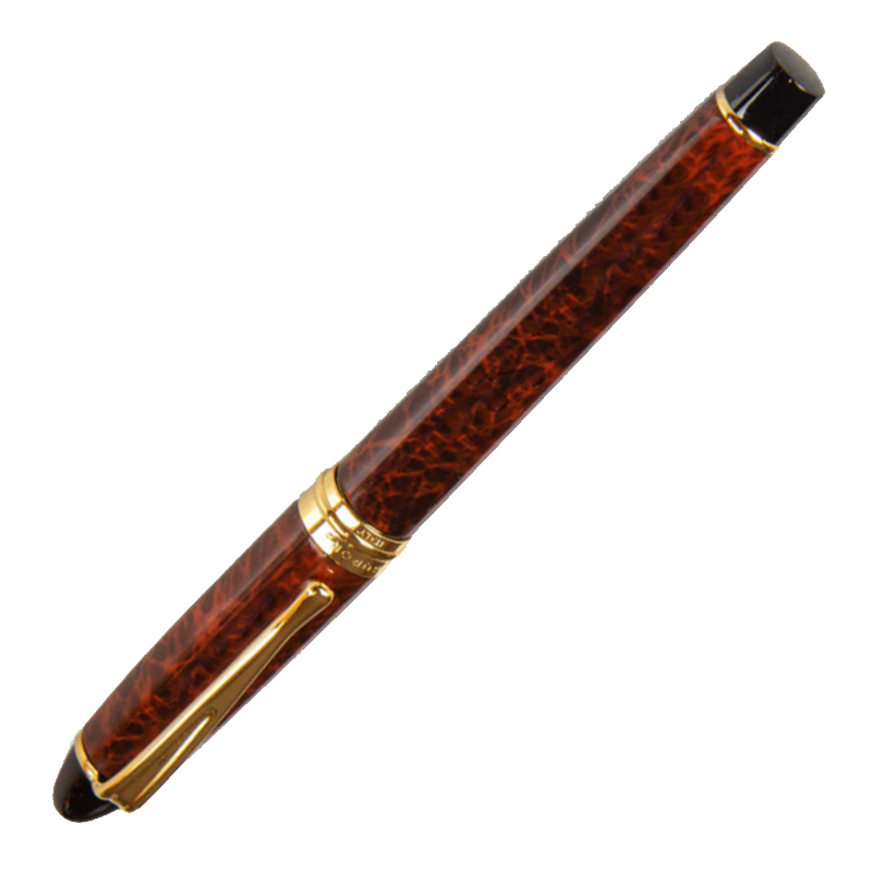 Ручка-роллер Aurora Ipsilon Tortoise Lacquer Gold Plated Trim сделана из акриловой смолы. Корпус гладкий с рисунком под мрамор. Отделка клипа ручки - позолота.