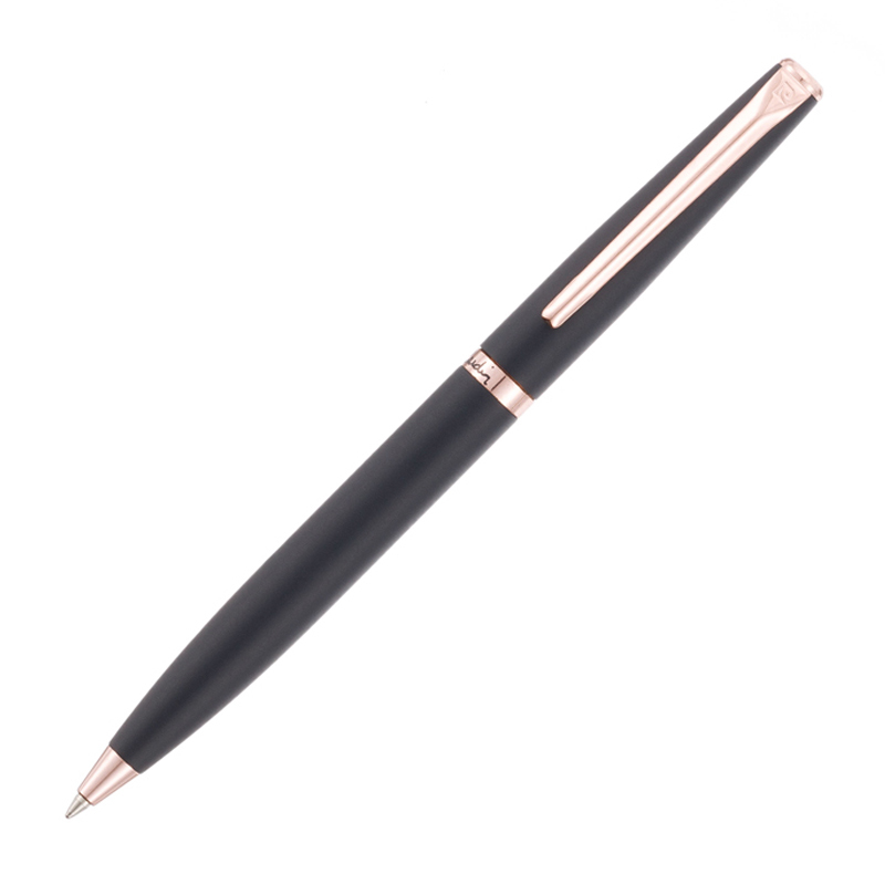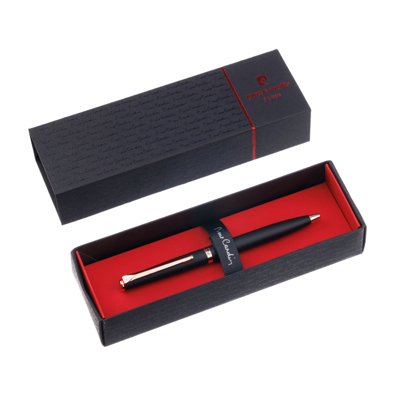 Дизайн шариковой ручки от бренда Pierre Cardin выполнен в элегантной черно-золотой гамме, которую оценят истинные ценители классики. Изящный латунный корпус выполнен в благородном черном цвете, украшен декоративным элементами в цвете «розовое золото». Эргономичная форма позволяет удобно расположить ручку в руке, предотвращает перенапряжение кисти и пальцев. Чернила в стержне ручки имеют экономичный расход, защищены от пересыхания и потемнения, оставляют беспрерывный и ровный след. Стержень ручки не царапает и не рвет бумагу. Имеет среднюю толщину пишущего узла (М). Цвет чернил – насыщенный синий. В комплекте с ручкой идет роскошный подарочный футляр.